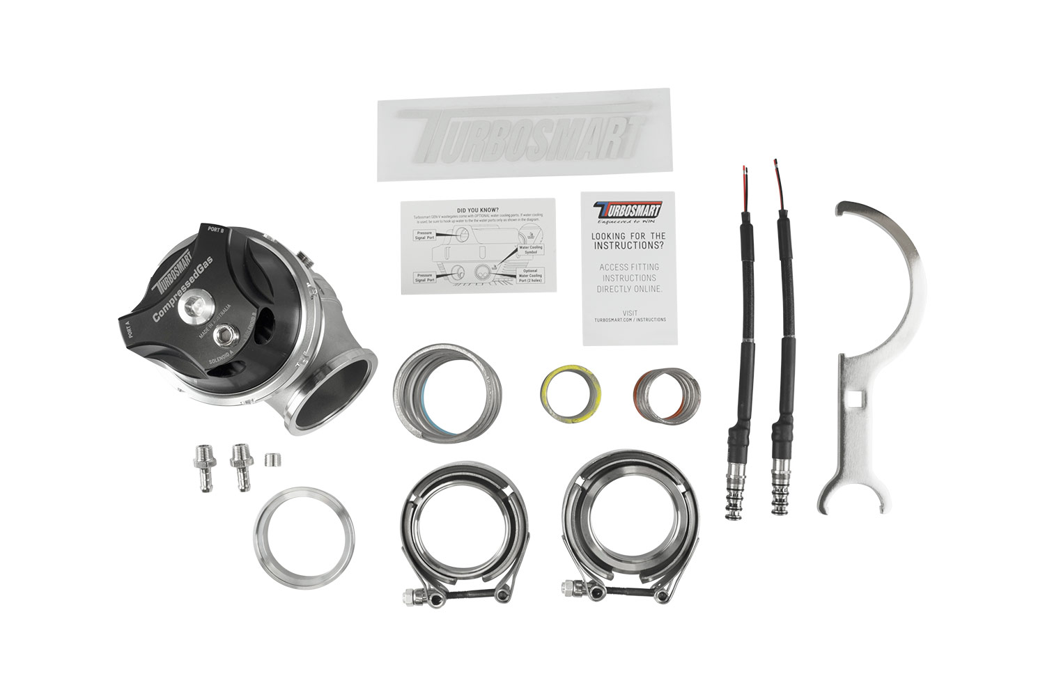 A direct fit upgrade to all Gen4 Turbosmart wastegates and feature our unique collar-locking system, variable actuator cap and base for easy, 360-degree optional routing of reference hoses, strap-type V-band clamps, optional liquid-cooling provision, 1/8″ NPT reference ports and are provided with the full range of available springs.