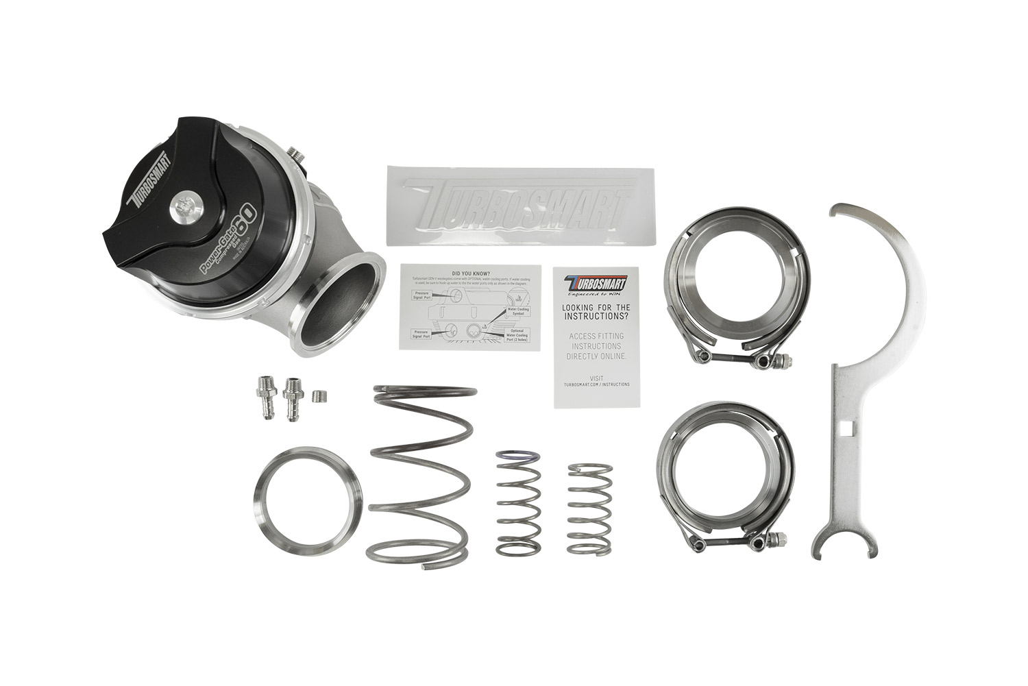 A direct fit upgrade to all Gen4 Turbosmart wastegates and feature our unique collar-locking system, variable actuator cap and base for easy, 360-degree optional routing of reference hoses, strap-type V-band clamps, optional liquid-cooling provision, 1/8″ NPT reference ports and are provided with the full range of available springs.