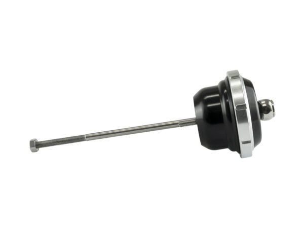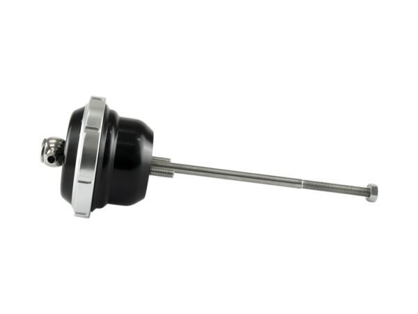 This is a Universal Single Port IWG75 Actuator supplied with a 150mm long, 1/4″ UNF threaded rod for fitment on a wide variety of turbochargers. Some fabrication is likely required, including additional hardware such as clevis and brackets.